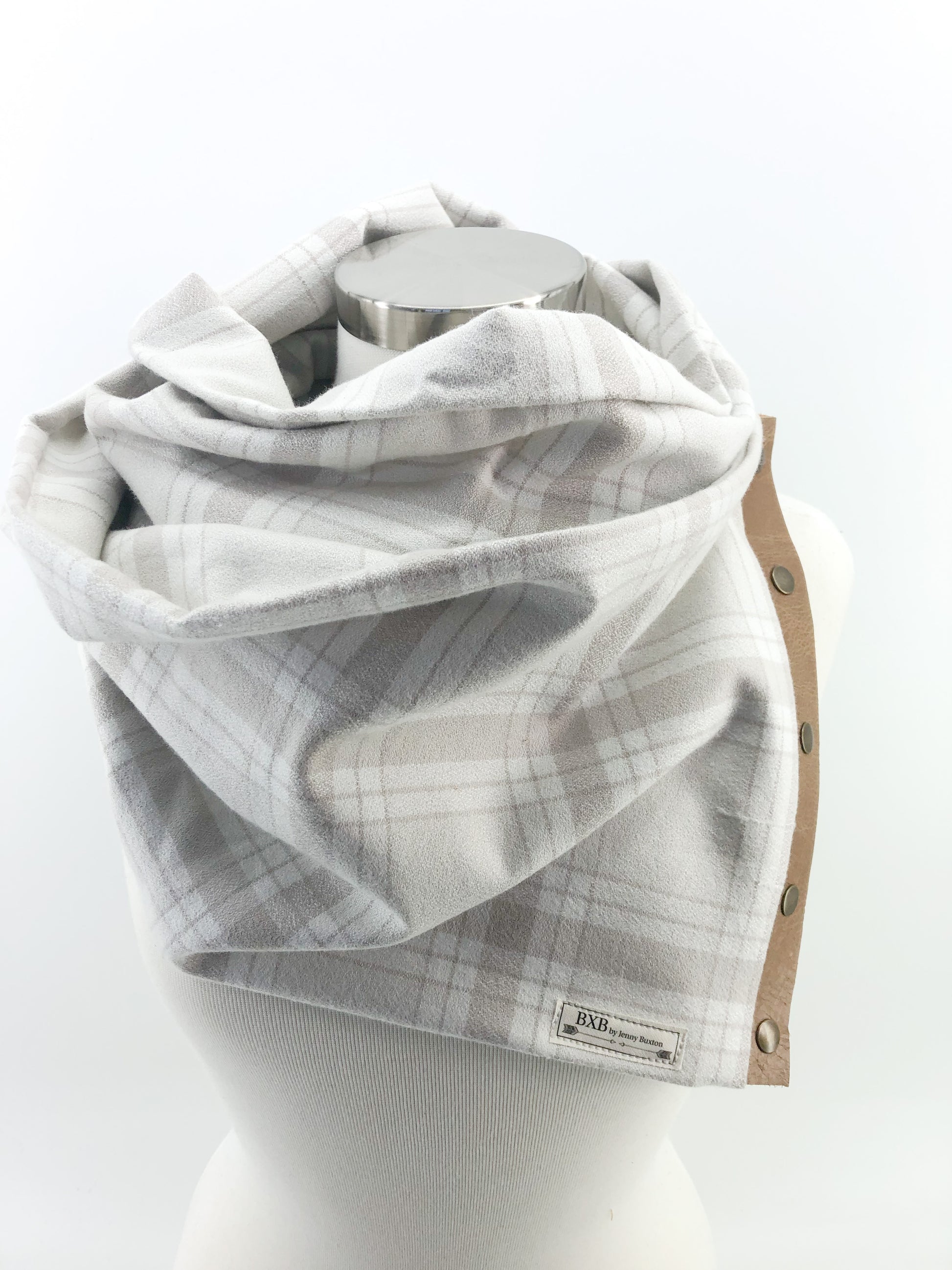 Bone Plaid Multi Snap Scarf with Leather Snaps